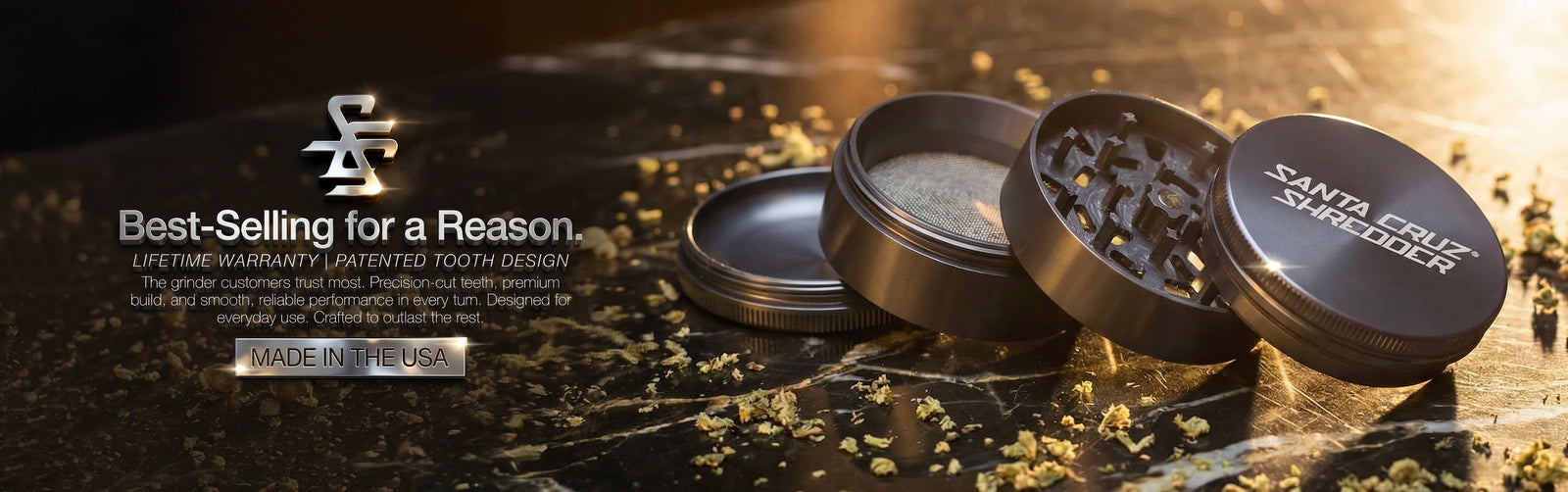 Since its release in 2007, Santa Cruz has been the #1 weed grinder for cannabis connoisseurs. It’s known for having the fluffiest grind, perfect for smokers and dry herb vaporizers. Santa Cruz Shredder is a USA-made grinder. It’s been designed and refined by passionate cannabis consumers who set out to make the perfect weed grinder. And they did.