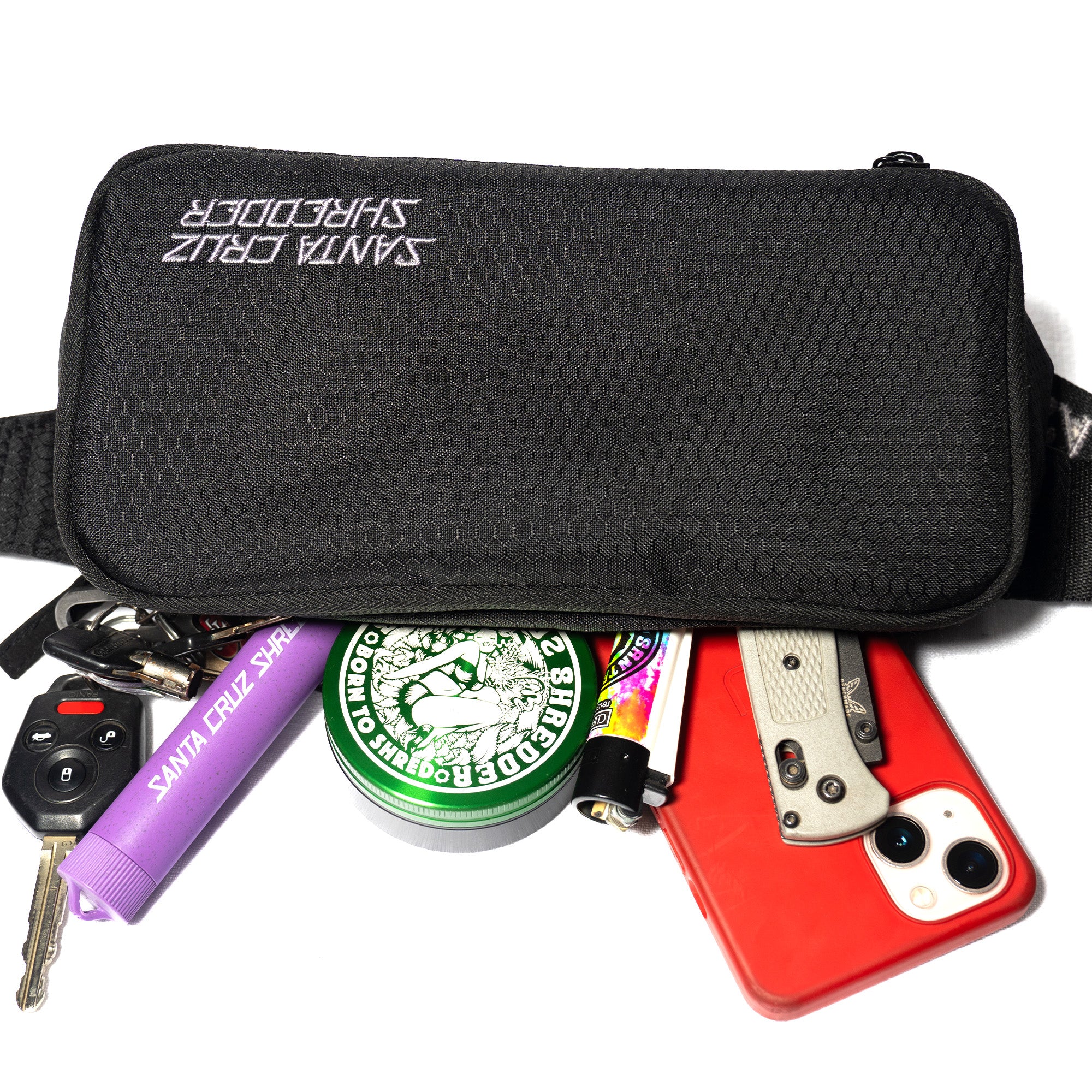 The ALL NEW SHRED SAC™ is redesigned from the ground up, now featuring a built-in PVC rolling tray, rugged ripstop nylon exterior, and a fully custom pocket layout engineered specifically for Santa Cruz Shredder products.